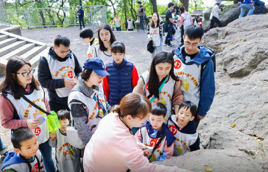 本次活动是以“宝石山寻宝”为主题,以家庭亲子徒步游学的方式展开。上午9时,活动在少年宫联欢厅门前广场正式拉开帷幕。在简短而热烈的启动仪式后,所有家庭依次踏上寻宝之旅。家庭成员们根据任务卡上的指示,了解了徒步路线和任务要求,同时家长们还向孩子们讲述了宝石山的历史故事。到达宝石山脚下后,活动进入亲子竞速赛环节,家庭成员需三人绑定手环,以最快速度到达宝石山台阶下的家庭获胜,获胜者将获得宝石作为奖励。