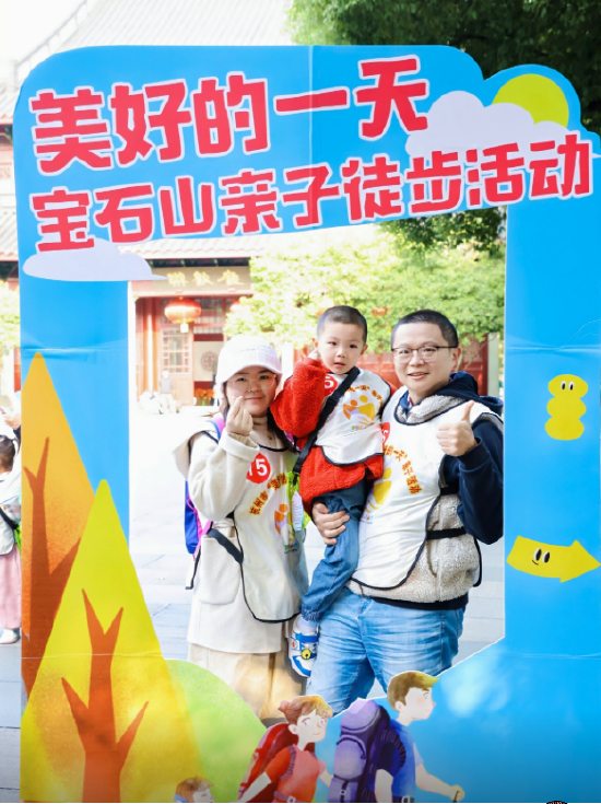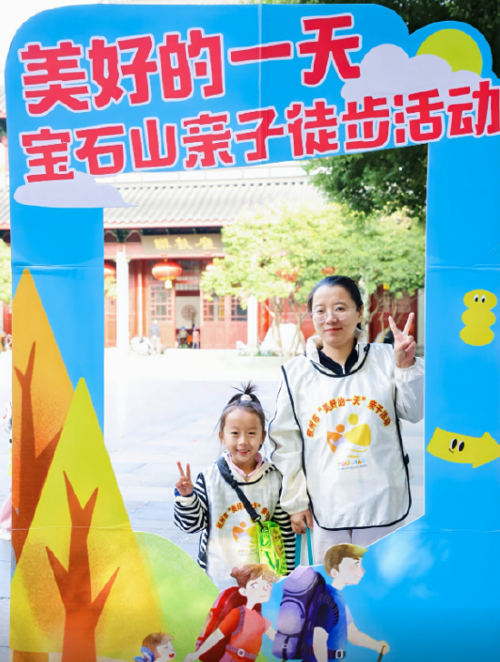 杭州青少年活动中心幼教部“美好的一天”活动负责人叶斐老师介绍说,本次活动从少年宫出发,一路上我们为孩子和家长准备了任务卡,沿着宝石山我们在任务卡上面标记了对应典故,在徒步的过程中,家长可以为孩子介绍。趣味登山也是本次活动的一大特色。在宝石山台阶前,我们设计了多种互动游戏,如按照不同颜色的脚丫贴、手掌贴指引行走,以及父母抱着孩子走过特定路段等。通过这些游戏不仅增加了登山的乐趣,可以增加家庭之间的亲密度,提升家庭关系。