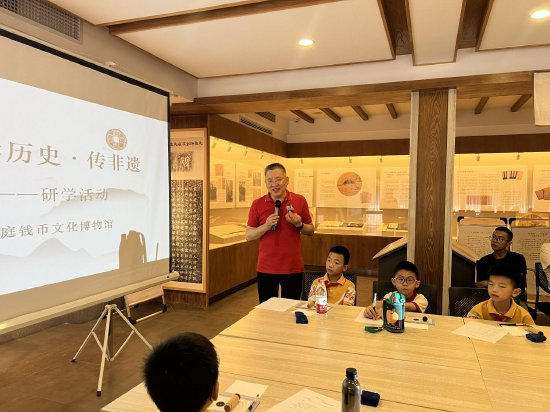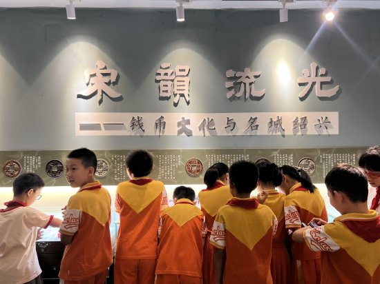 7月21日,一场别开生面的文化活动在绍兴戴葆庭钱币文化博物馆举行,参与本次活动的有绍兴北海小学新河弄校区418班学生。本次活动以“看钱币展览,学绍兴历史;听名人故事,传非遗技艺”为主题,旨在用钱币讲好绍兴名城和绍兴名人故事,并通过丰富的展览与互动体验,让参与者深入了解绍兴的历史文化底蕴及非遗技艺的魅力。