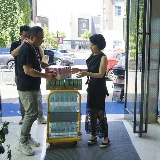 绍兴九鼎还为金德隆园区的工作人员送上了清凉饮品,也感谢园区对绍兴九鼎一直以来的大力支持。